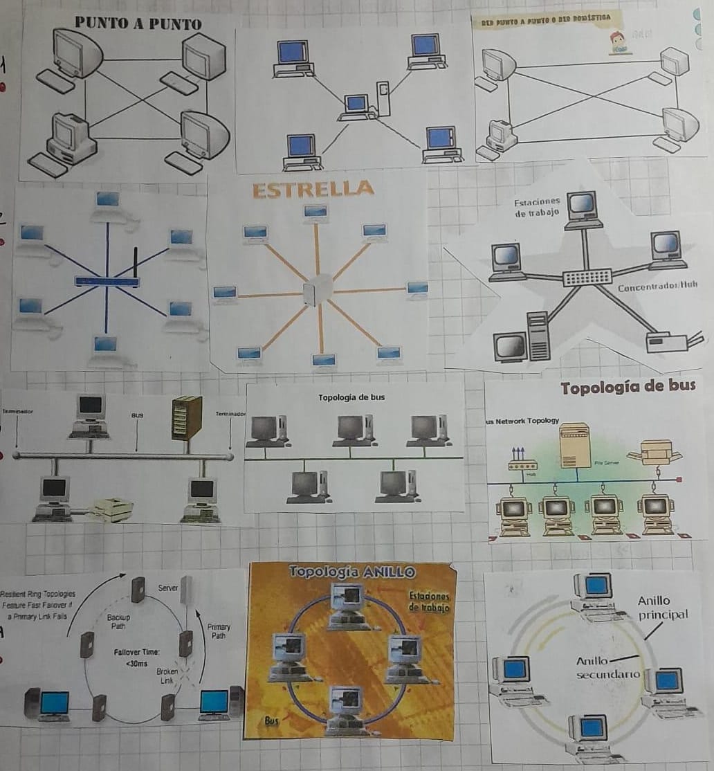 1. Topología en bus: Todos los dispositivos comparten un único cable. Es económica pero puede generar colisiones.
